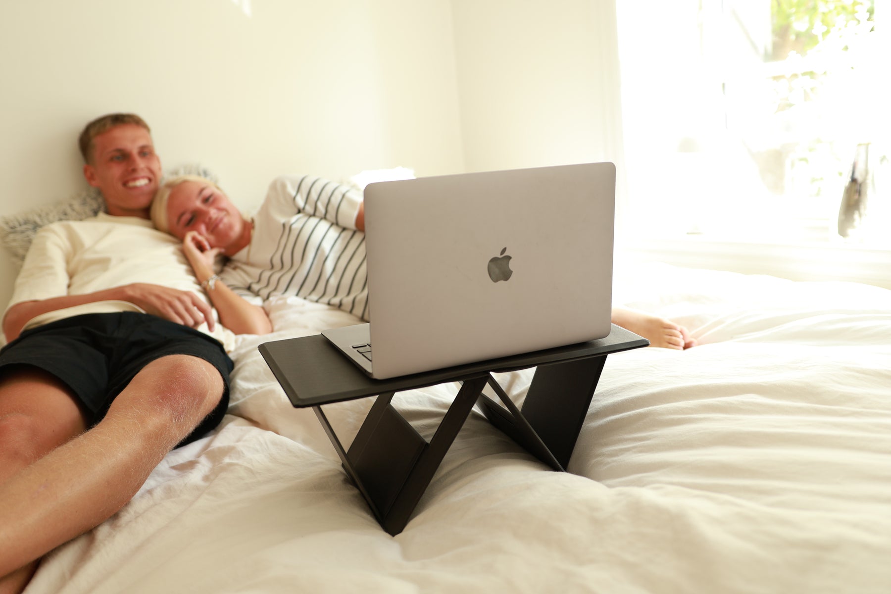 Desuden sikrer den, at computeren er løftet væk fra kroppen, hvilket både forbedrer luftcirkulationen, så du ikke ødelægger din computer over tid, og reducerer eksponeringen for elektromagnetisme.